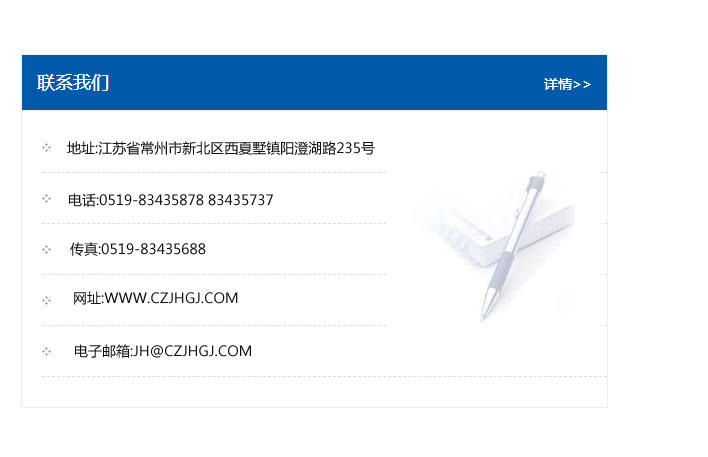 地址:常州市新北區(qū)友邦商務大廈1幢16、17層  電話:0519-85101652  傳真:0519-85112595  郵編:213022  網址:www.cz-jiayue_cn.szpenganxiang.com  郵箱:xiajifengaa@163.com